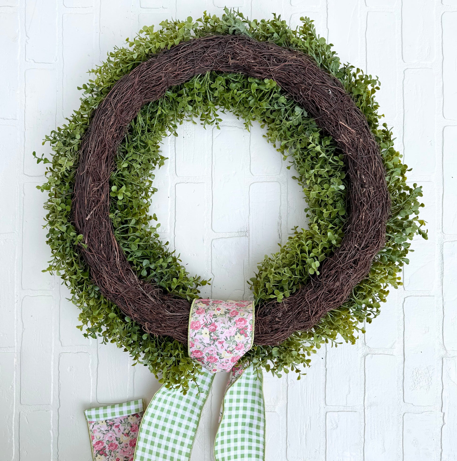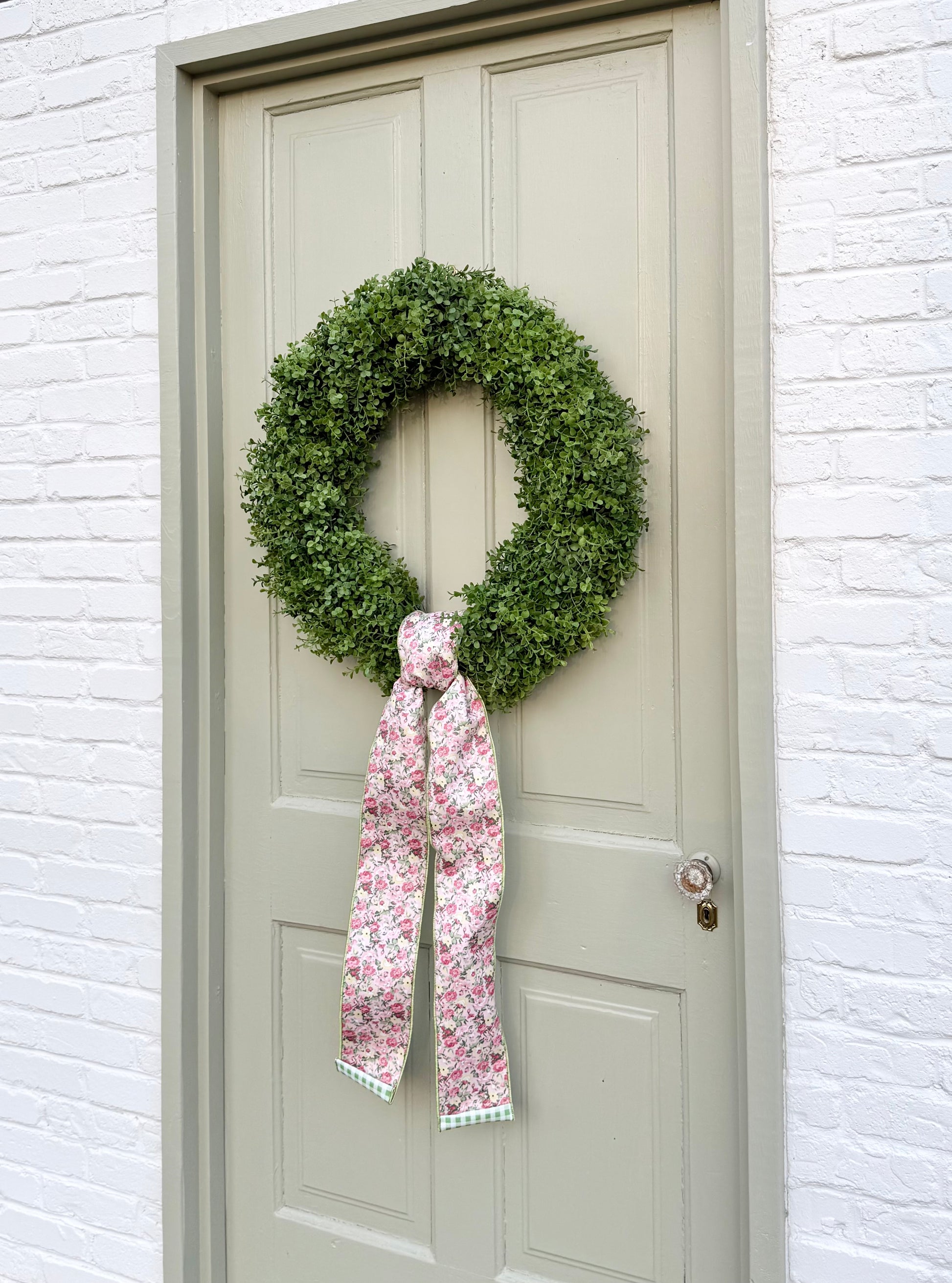 • To preserve its clean, tailored shape, this wreath is designed without a hanging loop. Simply add ribbon or floral wire if needed for displaying.